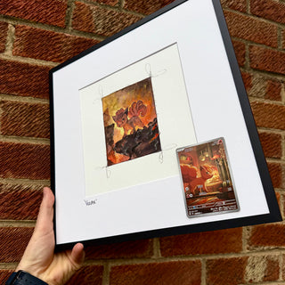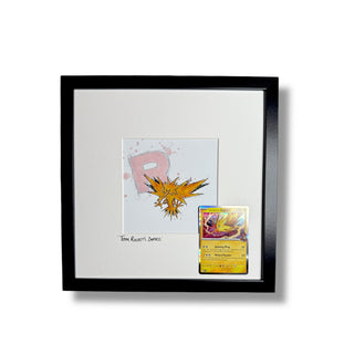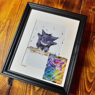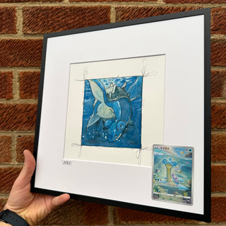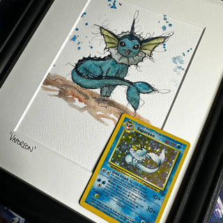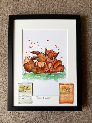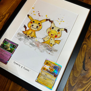Hand drawn, framed in house, finished with matching original Pokémon cards.