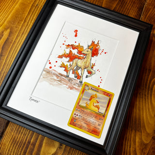 Rapidash - Original Watercolour with 1995 Pokèmon Card
