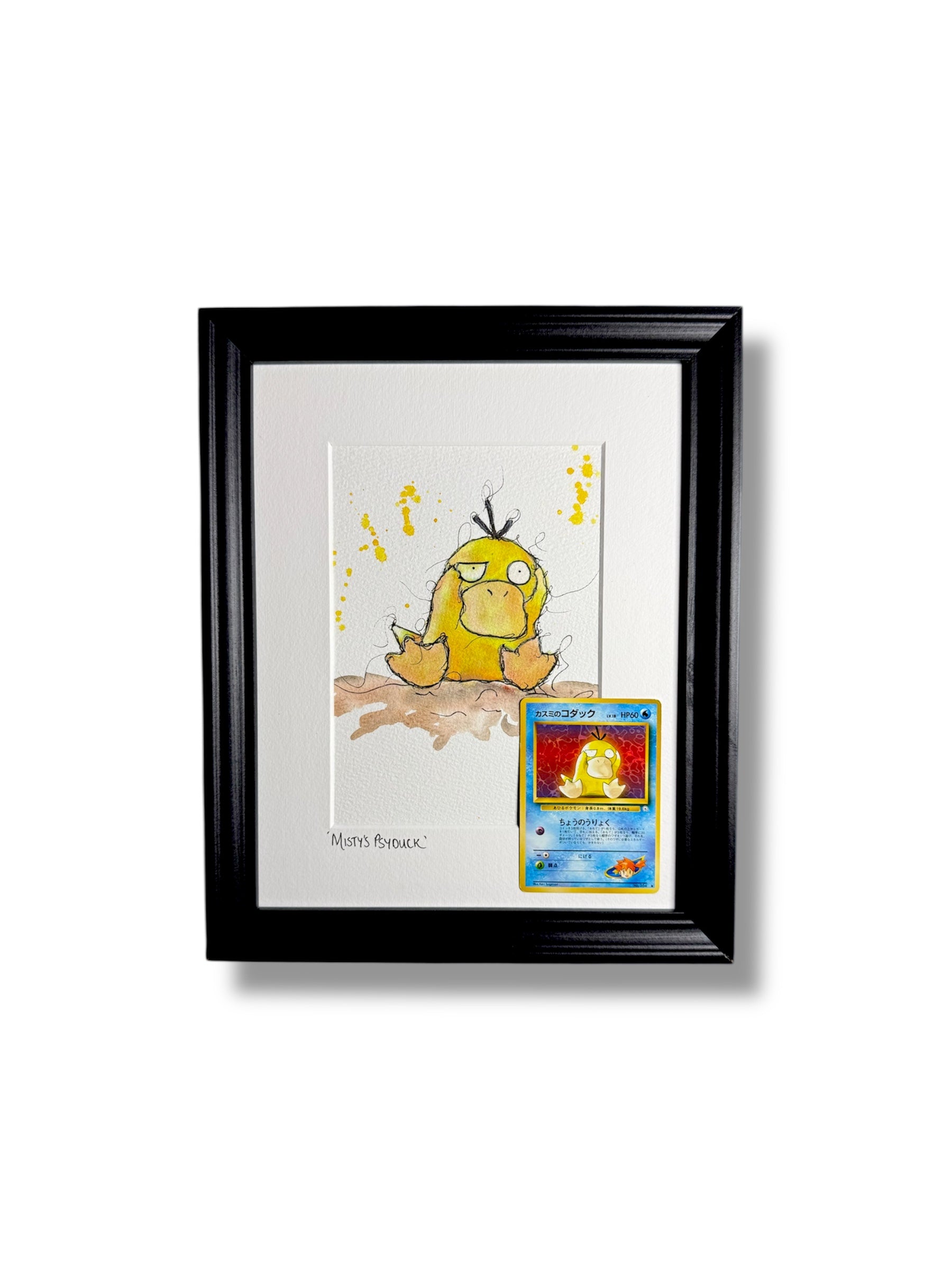 Misty’s Psyduck - Original Watercolour with Original 1995 Pokémon Card