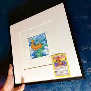 Original watercolours. Iconic cards. True collector’s editions. Each piece features a one-of-a-kind illustration, often framed with 1995 Pokémon cards or other premium collectibles.